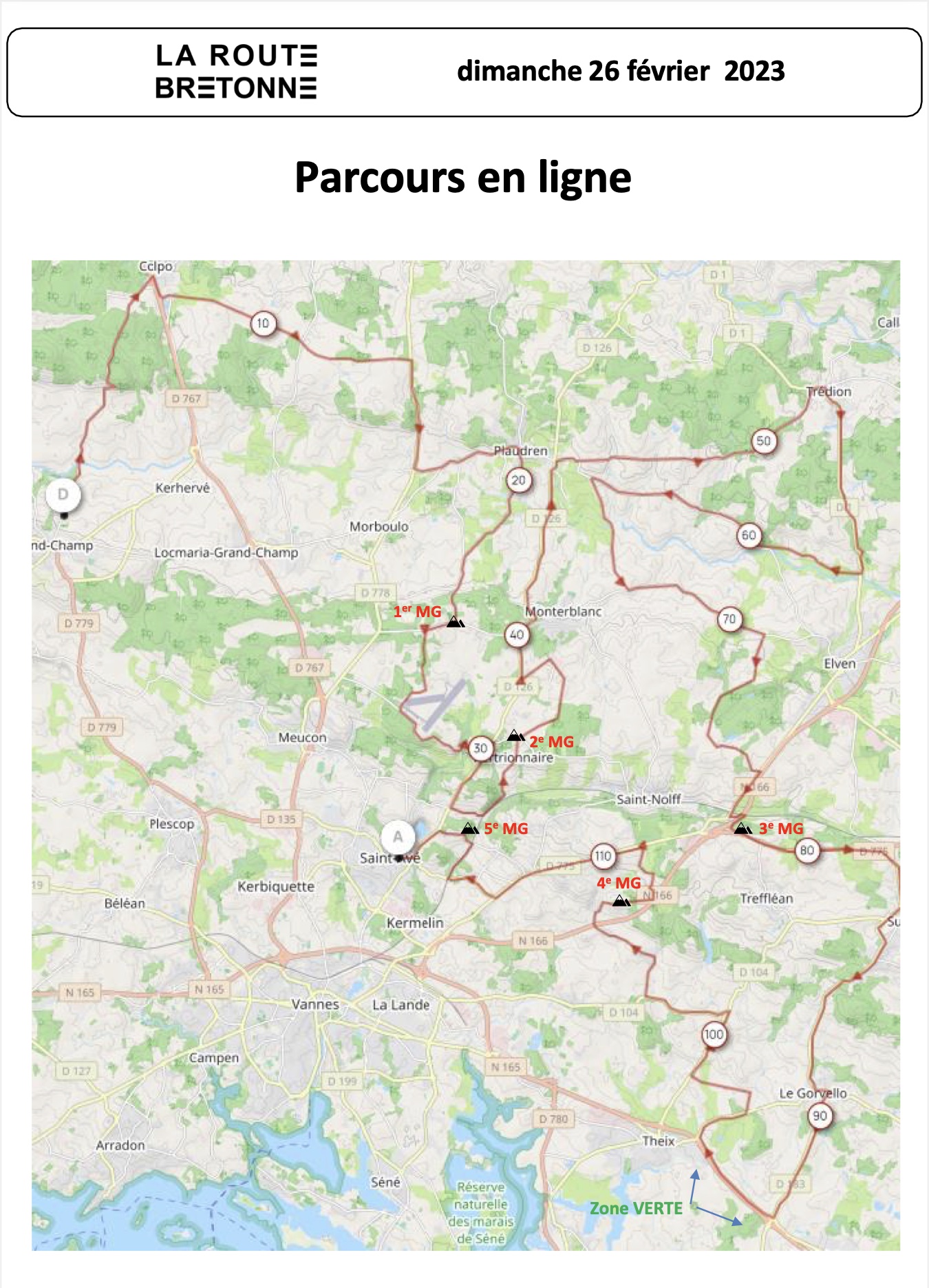 Passage à Colpo, Plaudren, St Nolff, Sulniac, Le Gorvello, Surzur, Theix, St Nolff, St Avé. Voir le détail du parcours sur Openrunner.