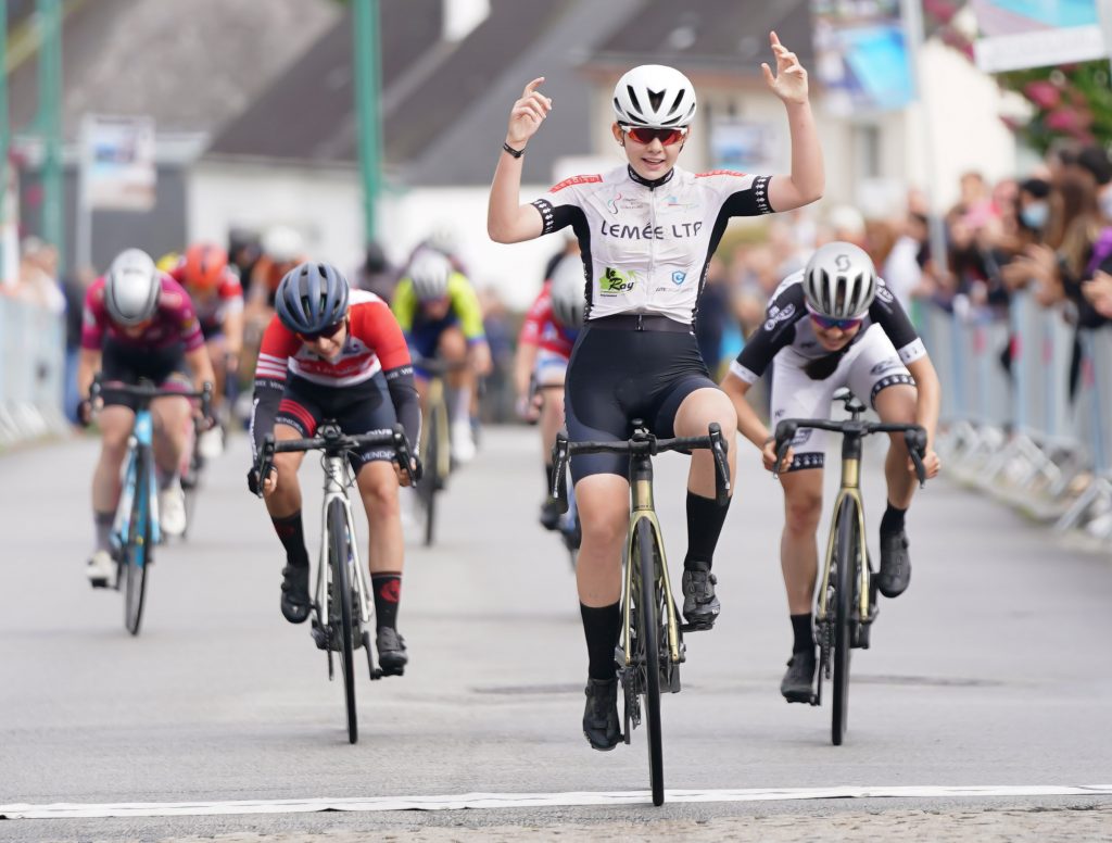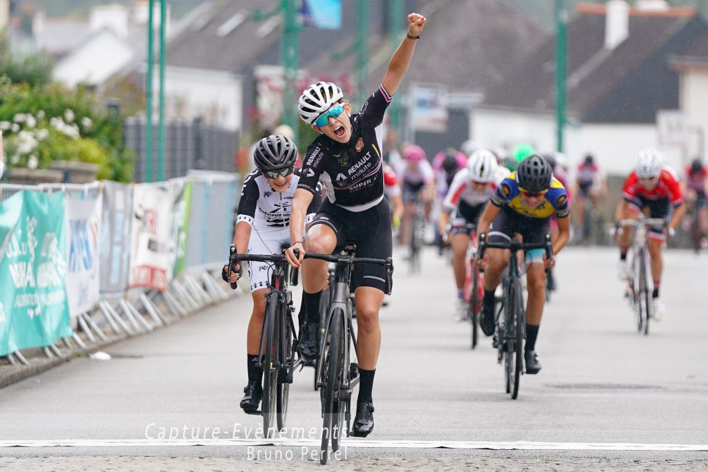 Les juniors et séniors s’élancent ensuite : 42 filles au départ sur une route humide. Une course rapide menée pendant plusieurs tours par Amandine BOISLORET qui se fera rattraper sur le final. Maurène TREGOUET du Véloce Vannetais Cyclisme, l’emporte suivie de Faustine CROGUENNOC et Justine GEGU. Une belle course ponctuée d’une victoire, de bon augure une semaine avant de participer au championnat du monde en Belgique !