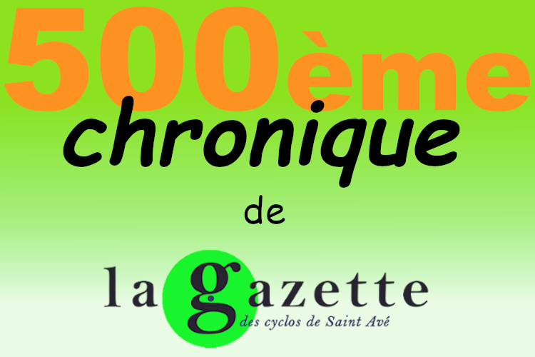 J’ai donc fini par trouver un thème. On va considérer que cette chronique pour ne rien dire est la 500ème chronique de «La Gazette» des cyclos de Saint Avé. 500 chroniques ça se fête, je m’en vais fêter cela.
